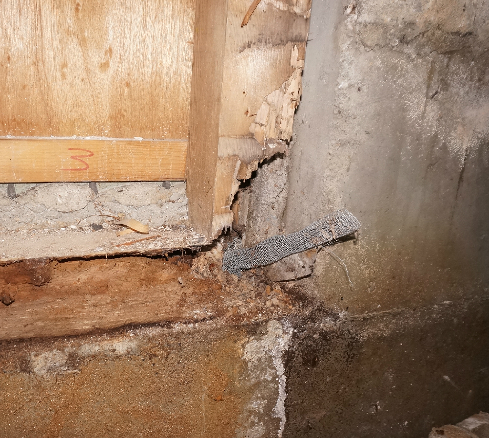 口ドアの敷居部分が以前から腐食があり、土台の腐食は確実にあると
